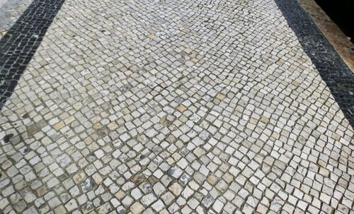ヨーロッパは石の文化だ。あちこち、石畳の町が多い。 リスボンも石畳の町である。舗道も広場も。 ベーシックというか、オーソドックスというか、とてもシンプルな石畳。 このようなものも。 折り紙の風車模様だ。 こういう何やら主張しているヤツも。 これ…