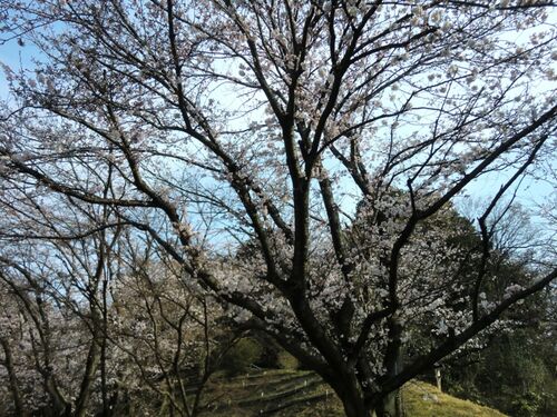 今年の桜、開花が早い。いつの間にやら、あちこちの桜、満開となっているらしい。 3時半過ぎ、この近所の桜と言えばここ、という小さな丘へ行った。 咲いている。 小さな丘へ上がる。 上空、すべて桜花で覆われているものではない。ここは5〜6分咲き程度…