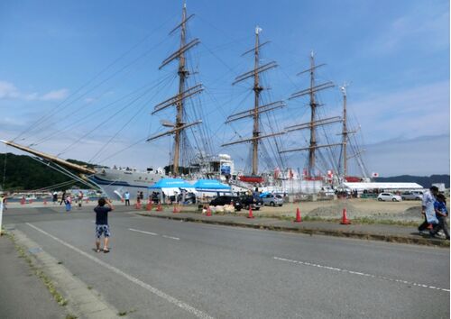 三鉄北リアス線で、12時少し過ぎに宮古に着く。小さなリュックをコインロッカーに預け、すぐにタクシーで港へ行く。 運転手には、「宮古港、漁港、魚市場のある所」、と伝える。と、運転手、「今日は日本丸が来ていますよ」、と言う。「日本丸か、写真でし…